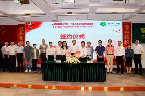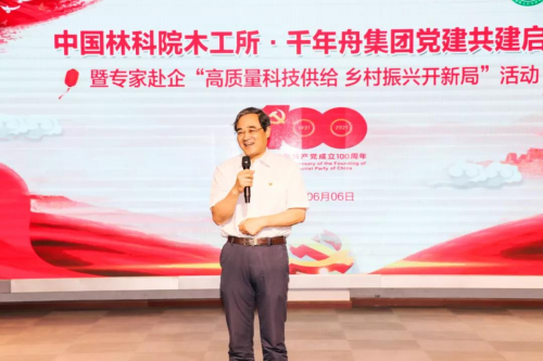 為實(shí)現(xiàn)黨組織優(yōu)勢互補(bǔ),以黨建促進(jìn)鄉(xiāng)村振興事業(yè)發(fā)展,充分發(fā)揮黨組織和廣大黨員推動發(fā)展、凝聚人心、促進(jìn)和諧的作用,努力構(gòu)建“資源共享、優(yōu)勢互補(bǔ)、互相促進(jìn)、共同提高”的黨建工作新格局,6月6日上午,中國林科院木材工業(yè)研究所黨委與千年舟集團(tuán)黨委結(jié)對共建啟動儀式暨專家赴企“高質(zhì)量科技供給·鄉(xiāng)村振興開新局”活動在千年舟集團(tuán)總部舉辦。