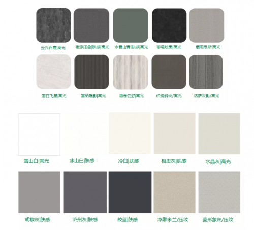 PET鉑晶板包含四個(gè)系列,精選時(shí)下流行色彩,符合當(dāng)代極簡(jiǎn)輕奢風(fēng)格,充分滿足室內(nèi)搭配需求。