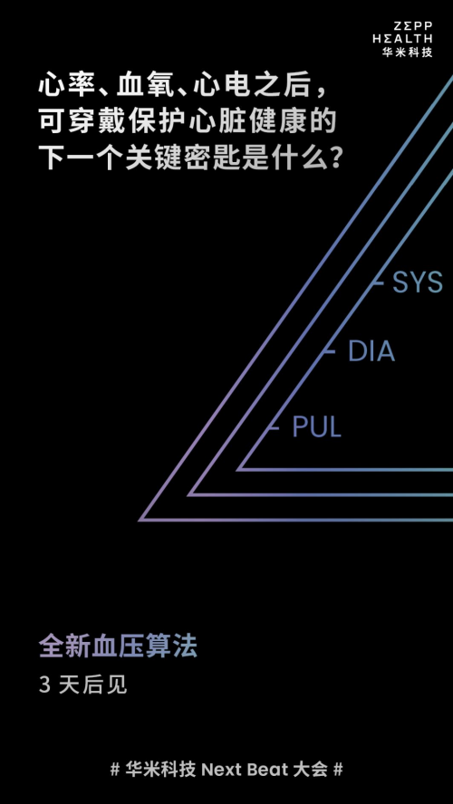 自7月6日華米科技宣布舉行Next Beat大會后,已經陸續在活動倒計時中透露新一代黃山芯片、自研可穿戴OS的消息,在剛剛過去的周末,華米又提出“心率、血氧、心電之后,可穿戴保護心臟健康的下一個關鍵密鑰是什么?”的問題,并給出了自己的答案:全新血壓算法。