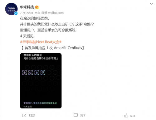早前,華米已經通過官微預告,將于7月13日的Next Beat大會上發布一款更懂用戶、更適合手表的可穿戴自研系統,雖然目前關于它的信息并不多,但相信后續通過黃山芯片與自研系統的磨合,華米定能給我們帶來更多優秀的產品與服務!