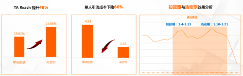 據(jù)悉在天攻的協(xié)助下,此次銀泰所投49家門店,TA Reach從之前單店投放至本次全國(guó)聯(lián)動(dòng)營(yíng)銷門店提升48%,單人引流成本從之前單店投放4.23元/人下降至1.42元/人。