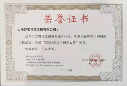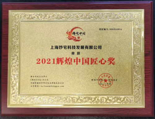 為慶祝建黨100周年,“輝煌中國展播工程”活動在北京隆重舉行。上海妙宅憑借多年來在促進健康產業發展、引領行業規范、增強民族品牌自信等方面所做出的貢獻,喜獲“2021輝煌中國匠心獎”榮譽稱號。