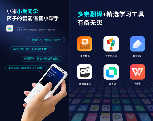 此外,duoqin多親F21 Pro支持AI語音助手小愛同學,能夠成為孩子日常的小幫手。還支持多親翻譯以及有道筆記、默默背單詞等學習工具,為孩子的日常學習,提供最大的幫助。