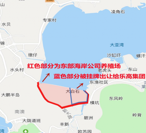 據深圳市東部海岸水產有限公司(簡稱:東部海岸公司)反映:其偶然發現深圳市規劃和自然資源局大鵬管理局委托深圳交易集團有限公司以掛牌方式公開出讓宗地代碼為440307405002GB00494地塊,土地面積533411.12平方米(800畝),建筑面積267000平方米,該地塊位于大鵬新區南澳辦事處新大路以東、新東路以北,系東部海岸公司東山三高水產養殖基地的一部分。