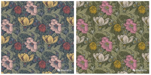 淺淺的粉色、嫩黃色、滿(mǎn)滿(mǎn)的少女感,每一朵花,每一片葉子,都有靈動(dòng)的姿態(tài),仿佛在隨風(fēng)搖曳。亦或是鼠尾草綠與墨藍(lán)色相結(jié)合,營(yíng)造出深沉懷舊的復(fù)古感。