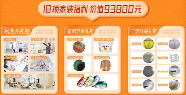 2、材料升級禮包:除了貼心的裝修服務,99周年慶活動還推出了超劃算的材料升級禮包。