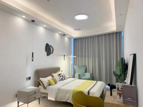 其他場景例如,玄關(guān)處配置了回家、休閑、暫離與離家模式;餐廳情景上,可調(diào)控用餐、聚會與浪漫模式,通過吧臺吊燈、風(fēng)扇燈與天花燈帶的搭配營造氛圍;臥室則配置了閱讀、夜起、助眠、浪漫與喚醒模式,并將智能窗簾加入系統(tǒng),帶來舒適的睡眠休憩體驗。
