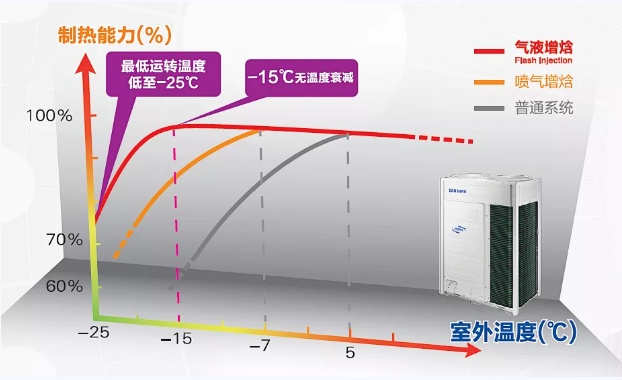 一臺好的壓縮機,將輕松驅動整個空調系統,機器制冷(熱)效果顯著且穩定。強勁的制熱功能,一直都是三星中央空調的性能亮點,經過技術不斷的升級,推出高效的氣液增焓技術。