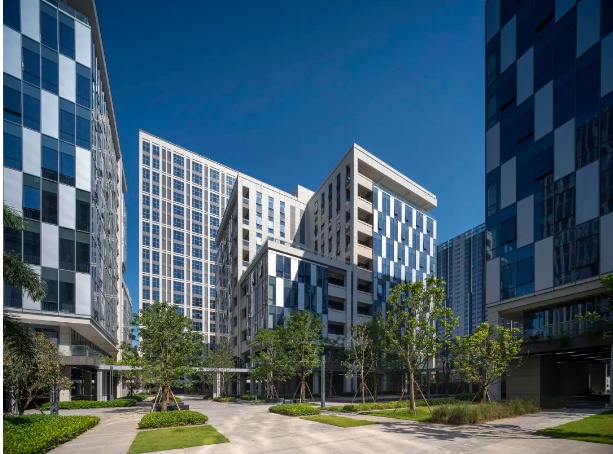 整個項目集中布置類獨棟花園辦公區,在建筑設計上引入花園辦公系統,與此同時注重建筑細部處理,對空調機位的設置、外立面裝飾型遮陽的處理著重考慮。