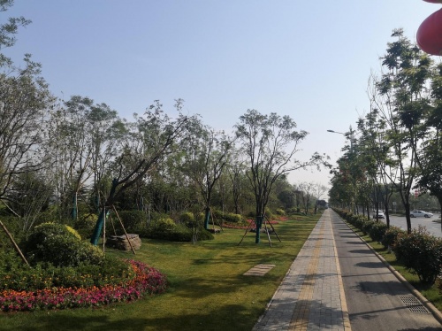 為展現良好形象,項目部對道路兩側進行了綠化提升改造,使道路兩側風貌協調、環境優美,以煥然一新的面貌迎接十四運“馬術”和“小輪車”項目的舉辦。