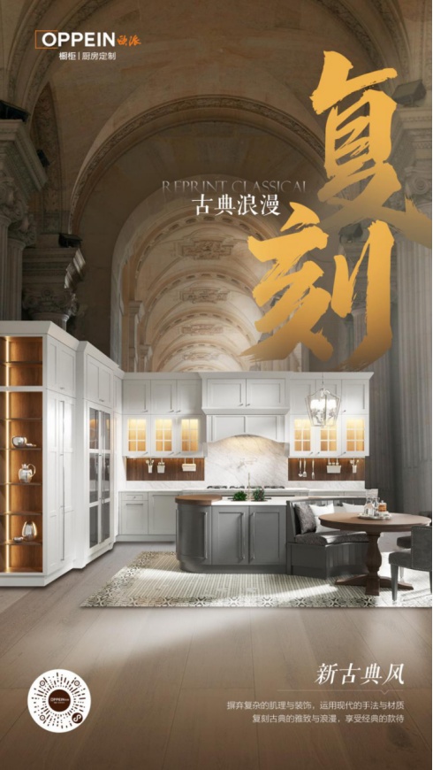 對于很多追求復古浪漫,又想要有豐富個性化元素的用戶來說,櫥柜選擇古典風是很有必要的。歐派櫥柜基于多元客戶需求,致力于為用戶打造有溫度的親切感廚房,新古典風摒棄復雜的肌理與裝飾,回歸古樸自然,運用現代手法與材質,讓用戶盡情享受古典的雅致與浪漫。配色多采用黑、白、灰這些經典色調,加入金屬、木質或皮質等時尚元素來溫暖中和,打造出獨屬于自己的大氣浪漫、幸福溫馨廚房。