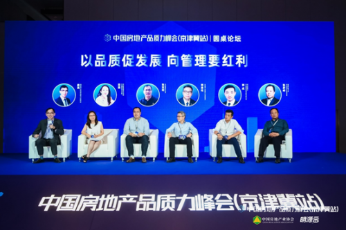 圓桌論壇環節,主持人明源地產研究院品質力分院院長唐亮,與河北省住宅與房地產業協會常務副會長張彥峰、北京科技園建設(集團)股份有限公司技術總監張寶利、華潤置地華北大區設計管理部副總經理田菡、金螳螂三維軟件公司董事長郭金柱、中冶建筑研究總院有限公司設計院院長郭戍5位嘉賓,圍繞“以品質促發展 向管理要紅利”主題,從研究機構、第三方、開發商、協會等不同視角分析品質新時代,深度解析如何向管理要紅利的可行方案。