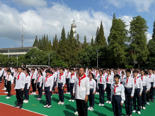 實驗中學團員、隊員們高唱團歌、隊歌,重溫入團誓詞、入隊誓詞,以不負時代、不負韶華的奮進姿態(tài),開啟新征程。
