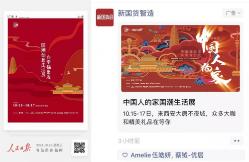2021人民日?qǐng)?bào)文創(chuàng)·中國(guó)潮X優(yōu)居·中國(guó)人的家于2021年7月正式啟動(dòng)?!爸袊?guó)潮”這個(gè)項(xiàng)目是人民日?qǐng)?bào)文創(chuàng)客戶端發(fā)起的文化創(chuàng)意類(lèi)的項(xiàng)目:在線上傳播中國(guó)的傳統(tǒng)文化,在線下做年輕人喜聞樂(lè)見(jiàn)的快閃,以及現(xiàn)場(chǎng)交流互動(dòng)的活動(dòng),實(shí)現(xiàn)傳統(tǒng)文化跨界的新表達(dá)、新創(chuàng)意和新融合。