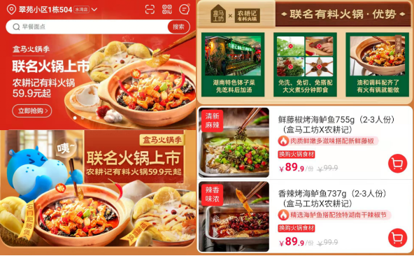 近日,農(nóng)耕記聯(lián)合盒馬鮮生推出新品——“有料火鍋”系列產(chǎn)品。石門肥腸煲、鮮藤椒烤海鱸魚、香辣臭桂魚、豬手煲鳳爪等7款新產(chǎn)品上線了盒馬深圳門店以及盒馬APP,正式開啟快手菜領域的新征程。其中黃燜牛三鮮與石門肥腸煲更是出現(xiàn)了上線當日,便售罄的情形,令人驚喜。