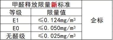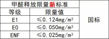 在即將實施的新國標中,將室內芯材甲醛釋放量按照限量值分為E1級、E0級和ENF級(無醛添加)三個級別: