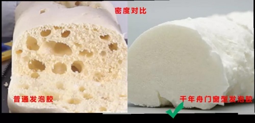 其次,千年舟門窗型發泡膠泡沫均勻細膩,密度比普通發泡膠高,密封性很好,用在窗框、空隙處,內部氣泡極少,能夠有效的避免門窗滲水,再也不用擔心暴雨時期,外面大雨連綿,屋里水流不斷了。