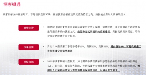 2021年,國內政策亦加大放開靈活就業人員在就業地參加社會保險的戶籍限制,完善勞動者權益保障機制,出臺了一系列法律法規以保障靈活就業人員的合法權益。