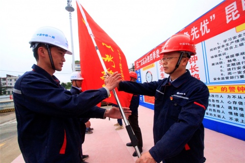 活動伊始,項目黨工委副書記楊文歡詳細傳達了中國中鐵、中鐵一局及新運公司“決戰決勝四季度”勞動競賽文件精神,并宣讀了“決戰決勝四季度、勞動競賽爭先優”勞動競賽活動方案。隨后班子成員為黨員先鋒隊、青年突擊隊、群安員、青安崗授旗,工人代表分別進行了表態發言。