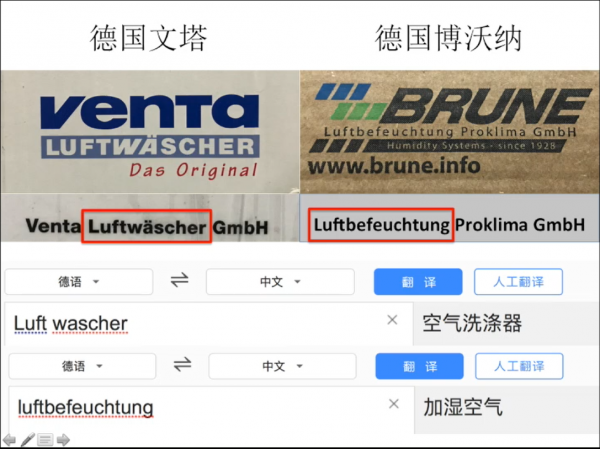 先看圖。這是文塔與博沃納的德國公司名稱,從名字上,可以非常直白的看出,兩個品牌的“出身”,一個是做空氣凈化器的,一個是做加濕器的。