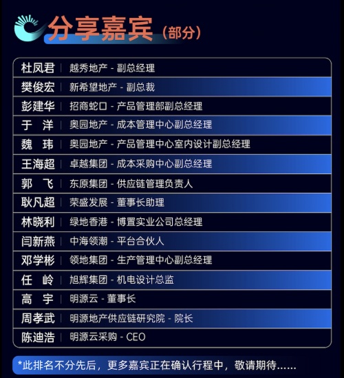 今年,將有1500位“行業(yè)最強(qiáng)大腦”,一同問道地產(chǎn)供應(yīng)鏈未來,包括標(biāo)桿房企總裁、采購總/成本總,品牌供應(yīng)商領(lǐng)軍人,地產(chǎn)行業(yè)聯(lián)盟高層,供應(yīng)鏈資深專家等。