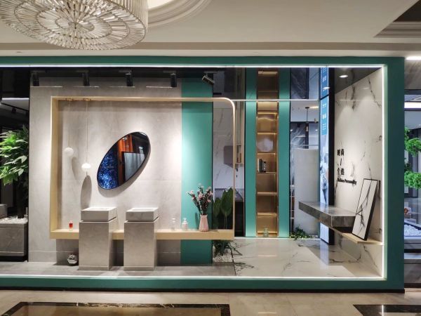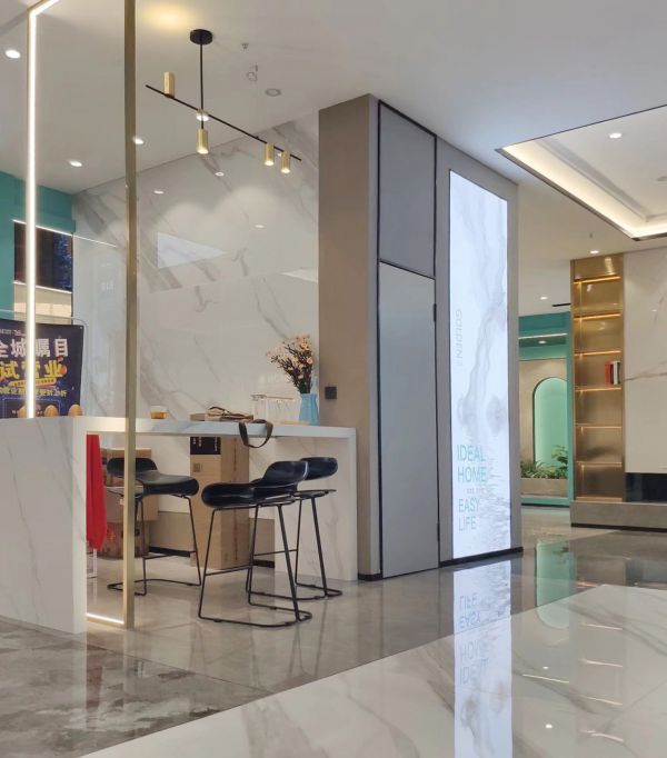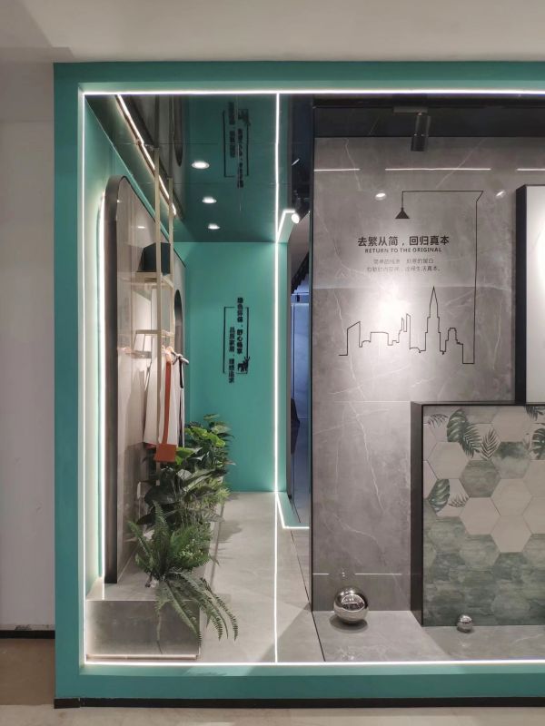 在信奉“第一感覺”的當下,店外立體展示氛圍更容易引人駐足。金朝陽溫州旗艦店在店外走廊區域,以櫥窗展示產品及樣板間,向每一位經過的客人演繹著瓷磚空間潮流的魅力,以吸引消費者入內選購!
