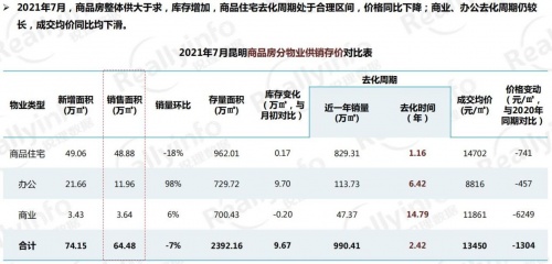 根據(jù)銳理數(shù)據(jù)公布的昆明樓市7月市場(chǎng)報(bào)告,昆明主城7月商品住宅成交均價(jià)跌破1.5萬,為14702元/平,銷售量環(huán)比下降18%,市場(chǎng)供大于求。