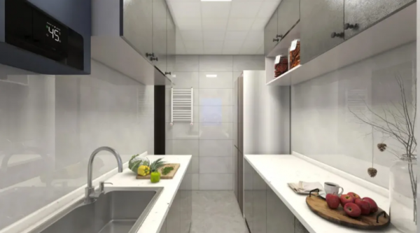 說到“干濕分離”,廚房也采用了這種設計,H形廚房將“水與火”分隔,使廚臺更加干凈整潔。