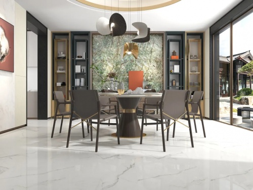 冰川白的自然紋理、包容色調和優雅質感,能夠適應墻地面、臺面、裝飾面等不同家裝場景的不同的需求,能夠輕松搭配簡約風、現代風、新中式等多種風格,打造高級且舒適的整屋空間定制私屬。