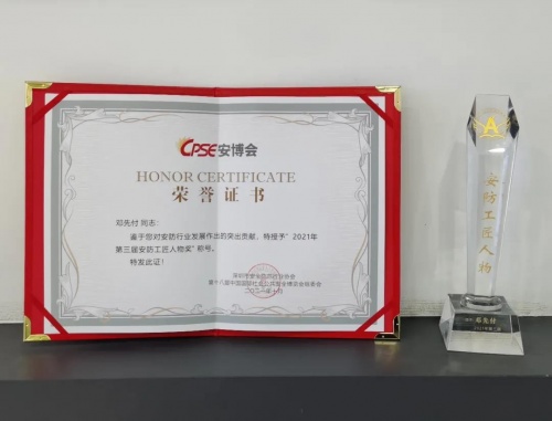 為表彰一批為安防行業(yè)做出突出貢獻的個人和企業(yè),與博覽會同期召開的第五屆中國安防系統(tǒng)集成商高峰會暨安防工匠人物、智慧安防優(yōu)秀解決方案、中國安防創(chuàng)新力企業(yè)頒獎典禮也在會展中心六樓桂花廳隆重舉行。在頒獎典禮上,深圳市領航衛(wèi)士安全技術有限公司董事長鄧先付被授予“2021年第三屆安防工匠人物獎”榮譽稱號。