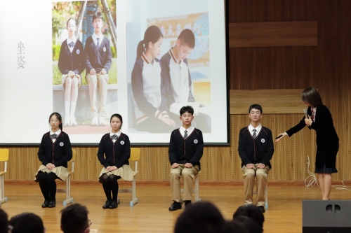 校服是學(xué)生的服裝,它不僅是一套服飾,還是媒介,把一個(gè)學(xué)校的理念和精神價(jià)值織在其中,浸染文化,自然地彰顯出學(xué)校的獨(dú)特性和氣質(zhì)美。它既是流動(dòng)的學(xué)校文化名片,也是學(xué)生隱性的學(xué)習(xí)資源。禮儀課堂上,美育老師分別從著裝禮儀、儀態(tài)禮儀、校園禮儀三方面進(jìn)行講解,學(xué)生掌握了制式西裝、襯衫、鞋襪、配飾的合理搭配,并從站姿、坐姿、走姿、蹲姿等形態(tài)方面積極參與練習(xí),明白了“不學(xué)禮,無以立”,儀態(tài)是表現(xiàn)個(gè)人涵養(yǎng)的一面鏡子,也是構(gòu)成一個(gè)人外在美好的主要因素,外在的禮儀是內(nèi)心深處尊重的表達(dá)。