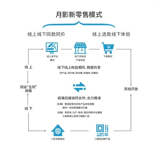 月影家居打造五同互聯的新零售模式,線上店鋪與線下門店互通,實現線上線下同產品、同價格、同優惠、同售后、同服務,線上線下權益相同,有效構建線上線下互補的良好生態。