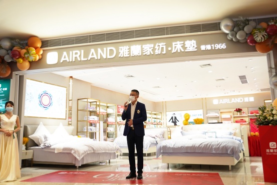 隨后,雅蘭家紡總經理朱明先生上臺致辭,朱總回顧了雅蘭56年的品牌理念,并表示,雅蘭不忘初心,會繼續堅守“品質至上”的匠心精神,以“讓每個人的生活多一點幸福”為使命,用飽滿的激情與狀態,繼續為廣大用戶提供高品質的家居產品,創造幸福生活。最后朱總對現場到訪的所有嘉賓朋友們表示感謝,對新店開業送上祝福,希望雅蘭家紡金山湖中心新店的開業,能更好地傳遞雅蘭品質睡眠和品質生活理念及生活方式。