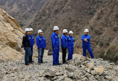 徐州(右二)與滿軍(右一)正在討論雨季施工方案(攝影:秦小明)