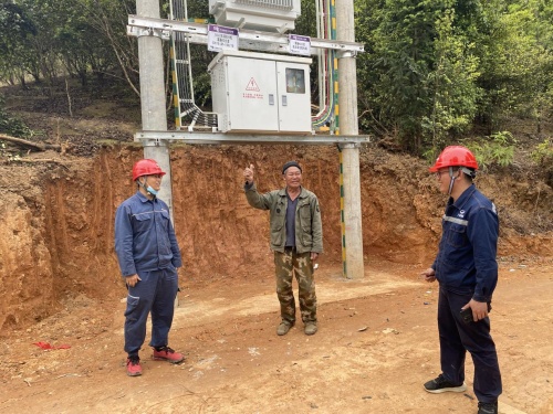 改變,始于2022年。1月份原住渭良溝群眾到浪平鎮政府對修路、通電提出了申請,鎮政府第一時間聯系了田林供電公司協調解決,接到用電申請,該公司立即組織黨員服務隊深入開展“我為群眾辦實事”專項行動,聚焦群眾“急難愁盼”等問題,主動走訪高山偏遠渭良溝收集群眾所需所求,千方百計解決群眾用電難題,現場制定解決方案,投資50余萬元,項目方案確定后,迅速組織施工,克服道路不通、時間緊、任務重和無法機械化施工等困難,采取肩挑背扛、人力運輸等方式,發揚連續奮戰作風,從申請用電到最后通電僅用50天,完成了線路通道清障、26基電桿人工組立、1.5公里線路改造,安裝一臺50千伏安變壓器,把供電服務延伸到“最后一公里”。