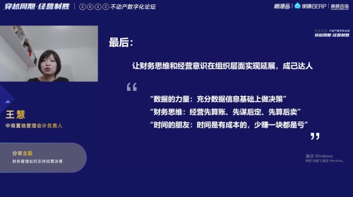 在支撐企業(yè)經(jīng)營(yíng)決策方面,財(cái)務(wù)人的專業(yè)能力、職業(yè)道德以及數(shù)字商、財(cái)商的敏銳度具有天然的優(yōu)勢(shì)。資深地產(chǎn)財(cái)務(wù)人王慧,以財(cái)務(wù)視角,分享了支撐經(jīng)營(yíng)決策的“三項(xiàng)基本功”和“兩套工具”,同時(shí)分享了市場(chǎng)下行期如何精進(jìn)的一些觀點(diǎn)。