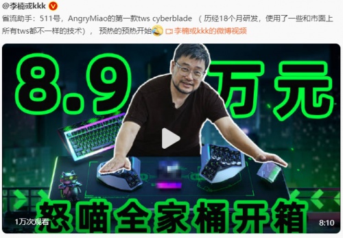 CYBERVERSE全家桶包含怒喵人體工學(xué)分體鍵盤 AM HATSU 藝術(shù)家 SHEK 手工涂繪做舊版、怒喵 CYBERMAT R2 無線充電魔毯等怒喵硬核科技產(chǎn)品,怒喵首款 TWS 耳機(jī) CYBERBLADE 也在其中。不過,在本次開箱中,李楠并沒有為我們直接展示 CYBERBLADE 的外觀細(xì)節(jié),只表示這是一款努力了十八個月、想要打敗蘋果的 TWS 耳機(jī)新品。